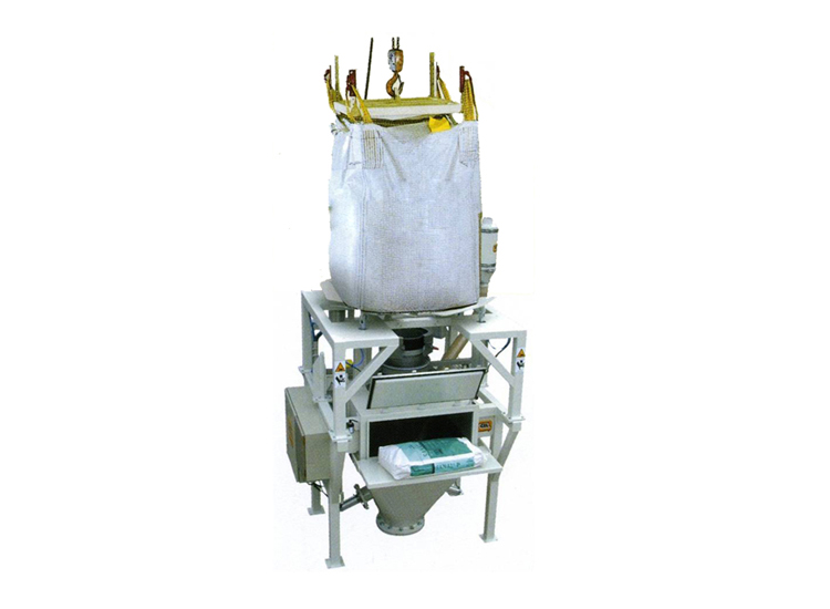 噸包拆包機(jī),噸袋卸料機(jī)將噸袋包裝物料提升到進(jìn)料口,人工將包裝袋下料口拆開后,打開流量控制閥和帶附帶的振動(dòng)下料裝置促使包裝袋內(nèi)的粉粒狀物料通過自重落到下方料斗中。