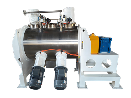 徑向混合(犁刀的作用):當主軸帶動犁刀旋轉時,犁刀會像耕田一樣將物料沿筒壁作徑向圓周湍動,并把物料推向兩側,形成雙向物料流。這不斷更新料面,實現(xiàn)物料的擴散混合和粒子間的摩擦剪切。