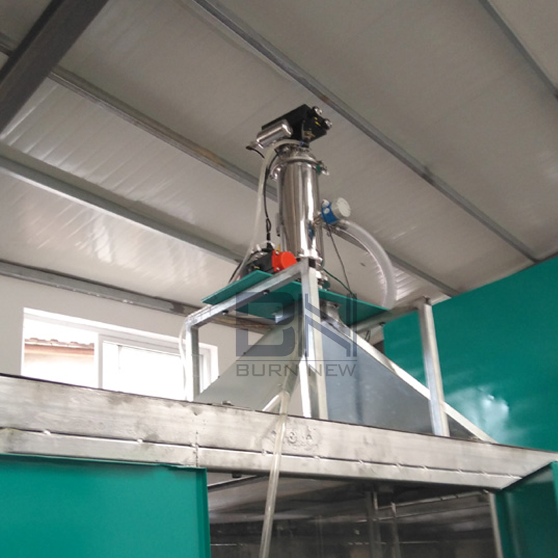 c) -料倉充滿物料時(shí),真空泵自動(dòng)關(guān)閉,輸送設(shè)備內(nèi)的壓力達(dá)到平衡。放料閥開啟,物料通過出料口流出,并直接落入儲(chǔ)料容器。